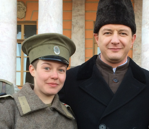 - Мы снова облачились в дворянские наряды. Костюмеры выдали нам «антикварное» нижнее белье - панталоны, ночные рубашки в пол, - рассказывает Ксения. - Жили в казармах, готовились идти на фронт. На съемки присяги приехал Марат Башаров, который сыграл Керенского. Он был всего три дня с нами, но заметно оживил съемочный процесс своими шутками.