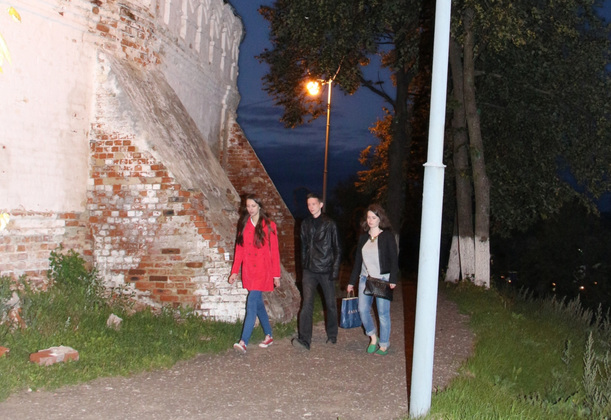 - Проблема освещения туристической дорожки вокруг кремля назрела давно, - рассказывает начальник участка наружного освещения ОП ОАО «ВОЭК» «Владимирская горэлектросеть» Сергей Бурдыкин. - Изначально был вариант использовать подземный силовой кабель, чтобы запитать светильники электроэнергией. Но такой вариант в силу сложного ландшафта местности был невозможен. В результате было решено провести электроэнергию по «воздуху». Светильники «связали» СИПом (самонесущим изолированным проводом), который чрезвычайно надежен и в силу небольшого диаметра малозаметен...