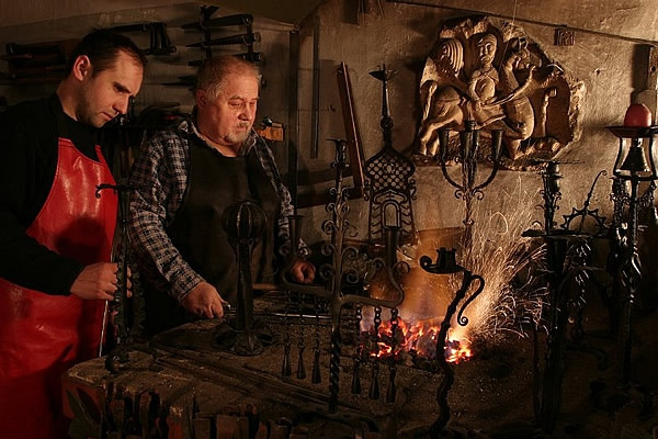 - С детства отец обучал меня ремеслу, сколько я себя помню, все время был в подмастерьях, - рассказал Алексей Бородин. - Сейчас папа болеет - ноги почти не ходят, ведь труд кузнеца очень тяжелый. А я продолжаю дело семьи. Отдыхать некогда, молодожены у нас частые гости, куют себе на счастье подковы, много экскурсий проходит здесь. Заказов не счесть. К отцу обращаюсь за советом.