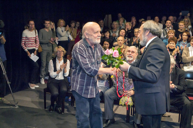 Борис Гунин назвал «исключительным событием для театра» присвоение народному артисту РФ Николаю Горохову звания «Почетный гражданин Владимирской области». А затем одарил цветами и премиями сотрудников, празднующих в этом году профессиональные юбилеи. Самым-самым на сей раз стал художник Станислав Бахвалов, уже отдавший служению в нашем театре 40 (!) лет своей жизни.