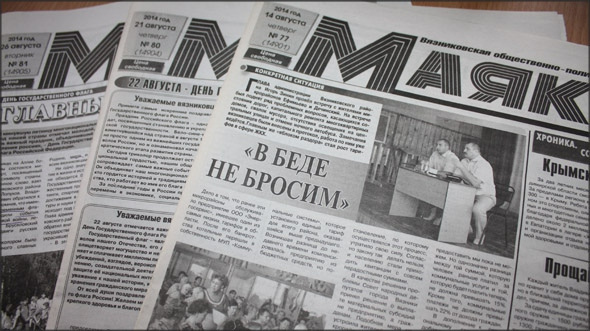 «ВВ» продолжают следить за ситуацией в вязниковской газете «Маяк», где власти района ‑ учредители издания ‑ накануне 1 сентября сменили редактора (подробности в «ВВ» от 3 сентября или здесь: http://www.vedom.ru/news/2014/09/02/14975-vyaznikovskaya). Коллектив встал на дыбы: во-первых, с ним не посоветовались, во-вторых, журналисты сомневаются в профессионализме будущего редактора.