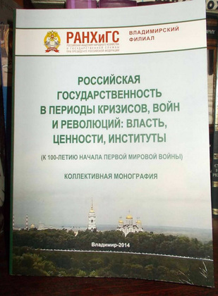 Заглавие новой книги - «Российская государственность в периоды кризисов, войн и революций: власть, ценности, институты (к 100-летию начала Первой мировой войны)».