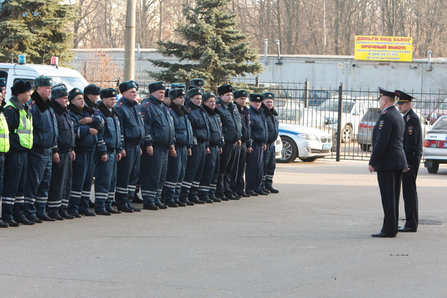 В актовом зале областного управления ГАИ почти нет свободных мест: к дежурству приступает усиленный 30 столичными сотрудниками личный состав отдельного батальона ДПС ГИБДД УМВД по Владимирской области. За кафедрой ‑ майор Михаил Федоров, и.о. командира батальона. В президиуме ‑ владимирское руководство ГАИ и начальствующие гости. Инспекторы, расположившиеся в зале, старательно записывают в тетради вводные на ближайшие 24 часа. Сразу и не разберешь, кто из них прибыл из Москвы, а кто служит в составе нашего отдельного батальона. Впрочем, задачи для всех, кто приступает к работе в дежурные сутки, общие ‑ пресекать и выявлять нарушения ПДД.