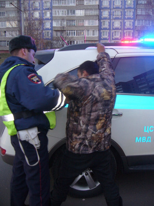 Задержанный ‑ гастарбайтер из Узбекистана Умид. От него пахнет алкоголем, но Умид ехал на пассажирском сиденье и, значит, ничего не нарушал.