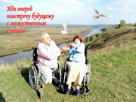 На конкурс социальной рекламы было подано более 200 заявок. В том числе и от общественных организаций. Лучшим социальным плакатом жюри признало работу «Иди навстречу будущему с мужественным сердцем» коллектива Вязниковского комплексного центра социального обслуживания. На нем - двое пожилых людей в инвалидных колясках, клиенты стационарного отделения пос. Сарыево, в живописном месте на берегу реки выпускают в небо пару белых голубей.