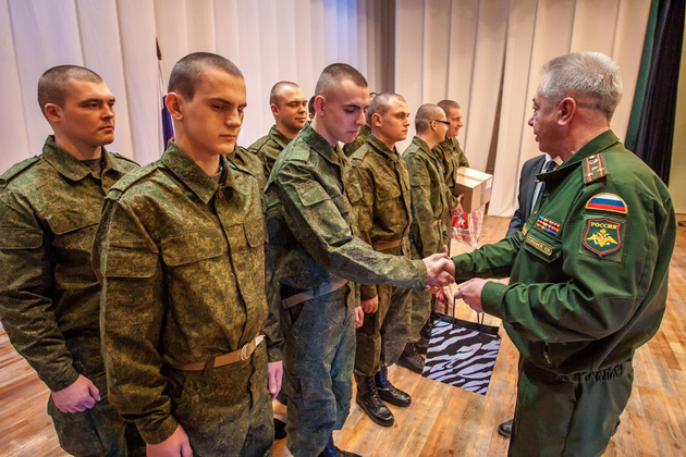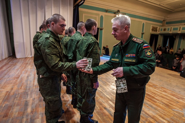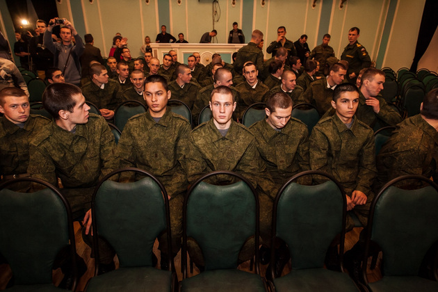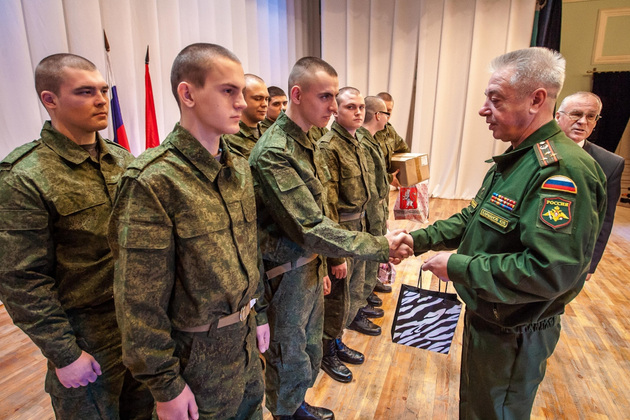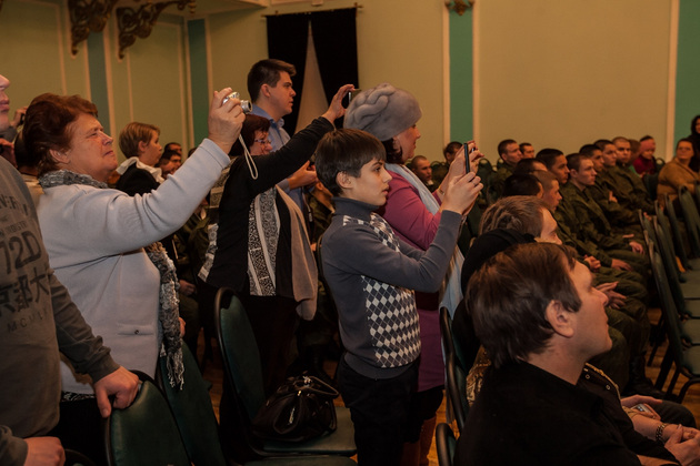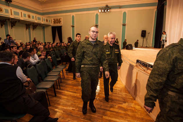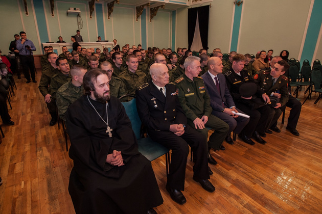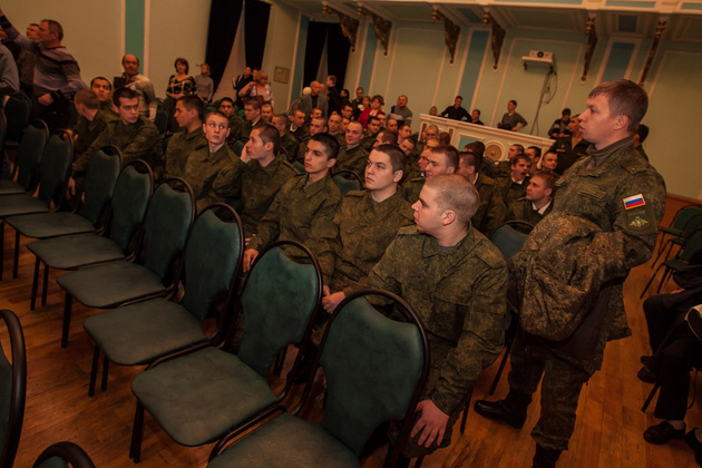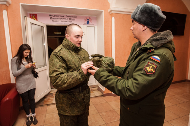 В среду во Владимирском Центре культуры и искусства на Соборной (бывшем Доме офицеров) состоялась торжественная отправка 10 призывников из 33-го региона в подшефную воинскую часть - 68-ю бригаду кораблей охраны водного района Черноморского флота в Севастополе. Еще 45 новобранцев отправились служить в сухопутные войска Южного военного округа (г. Ставрополь) и в войска материально-технического обеспечения Западного военного округа (г. Острогожск). Но свой армейский путь юноши начали накануне - со сборного пункта военного комиссариата Владимирской области.