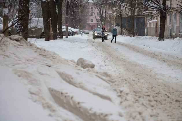 Так же, как и на подъезде к детской городской поликлинике № 1 на Студеной горе. Снег тут буквально по колено. Здесь ситуация усугубляется еще и тем, что по этой «дороге» вынуждены пробираться не только легковые машины, но и молодые мамы с колясками.