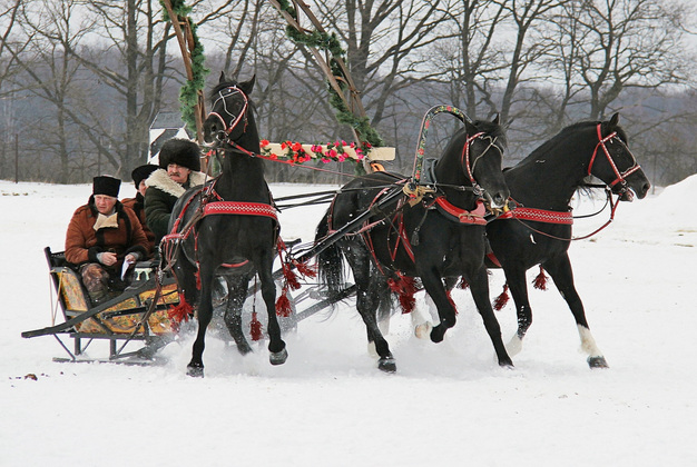 Парад, фигурную езду для экипажей всех видов, санный паркур, бега взапуски собрались посмотреть несколько сотен человек. Огромное число детей ‑ тут для них вообще сказка и раздолье. В протоколах соревнований заявлено 27 конников из Костромской, Московской, Тверской и Владимирской областей. Нашу область представляли клубы «Сельхозпредприятие» и «Рублевские зори», дебютировавшие в экипажной езде. Кроме того, еще от «Богдарни» выступали мастер-наездник, неоднократный победитель и призер чемпионатов России по русским тройкам Василий Минчев и специалист по упряжной езде Алексей Гриценко. Они выступали на турнире на тройках АТК «Богдарня» - владимирских тяжеловозах и вятках.