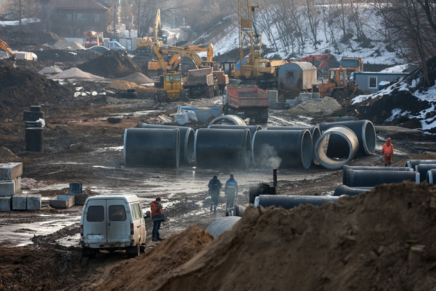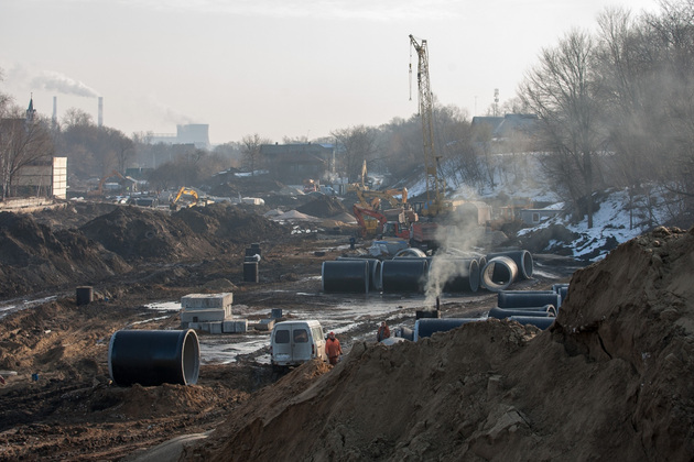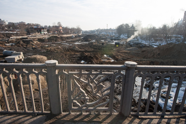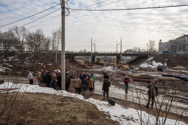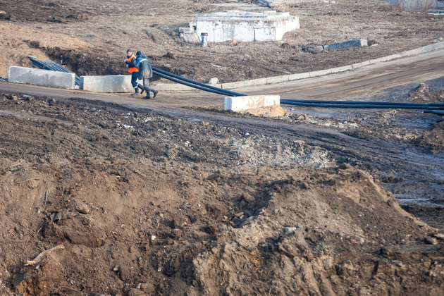 Сейчас подрядчики перекладывают коммуникации. Канализационные и газовые трубы уже на месте, теперь к работе приступили связисты. За лето планируется закончить работу с сетями и к сентябрю уложить дорожное полотно в щебне до Ерофеевского спуска. Этому, как заявил Шохин, дома на Заднем Боровке, жители которых не согласны с оценочной стоимостью изымаемых земель, не помешают. Переговоры с людьми продолжаются, но домов в створе дороги уже нет, сообщил он.