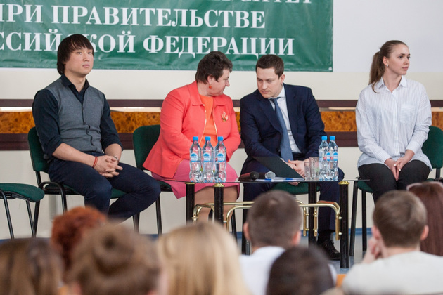 Руководитель Росмолодежи Сергей Поспелов и губернатор области Светлана Орлова вчера во Владимирском филиале Финансового университета при Правительстве РФ встретились с молодыми владимирцами. А перед этим гости из Общественной палаты РФ и Росмолодежи осмотрели выставку-презентацию волонтерских проектов.