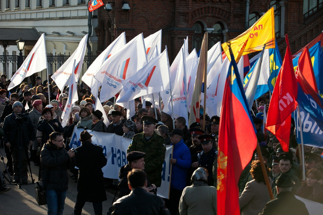Митинг-концерт «Мы вместе» инициировало Владимирское областное объединение организаций профсоюзов. Студенты, общественники, депутаты, ветераны, казаки, представители различных партий и разных профессий собрались на Соборной площади, чтобы выразить свою позицию по поводу первой годовщины воссоединения Крыма с Россией. С удовлетворением владимирские активисты отметили: среди участников акции - губернатор Светлана Орлова, руководители города и области, гости из подшефного Нижнегорского района Крыма.