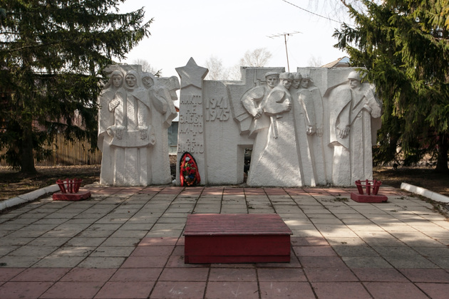 - Один из них был обновлен к прошлому юбилею Победы, - рассказала нам местная молодая мама. - Его даже вынесли с территории школы, чтобы доступ к монументу был свободным для всех. Новый мемориал расположен между школой, детским садом и магазином на глазах у всего населения села.