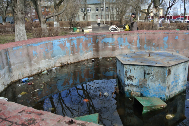 С 9 утра в Александровском парке культуры и отдыха наводят чистоту. На уборку выходят как дворник, так и представители администрации парка. А вот в сквере около районной администрации все бы ничего, если не заглядывать в фонтан. Он ждет своего часа, поскольку запускать его с огромным количеством жестяных банок и бутылок внутри -