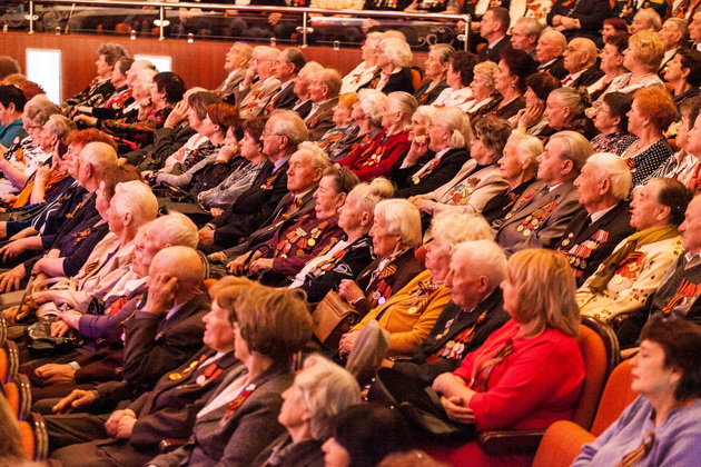 Песням и стихам о войне предшествовало областное торжественное собрание, посвященное 70-й годовщине Победы, - главному празднику года в России. На собрание были приглашены 400 ветеранов со всей области.