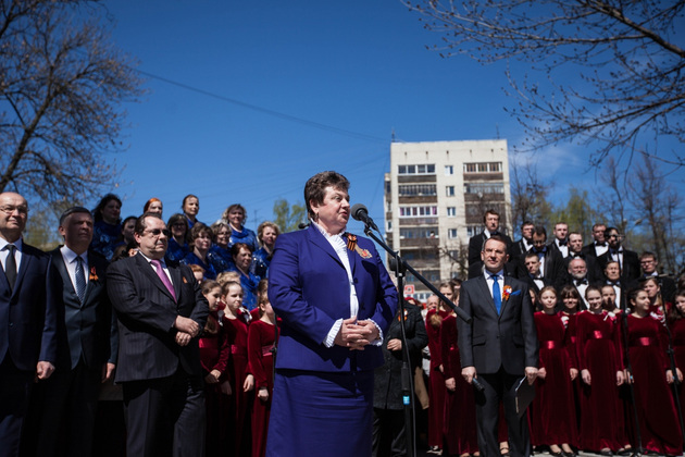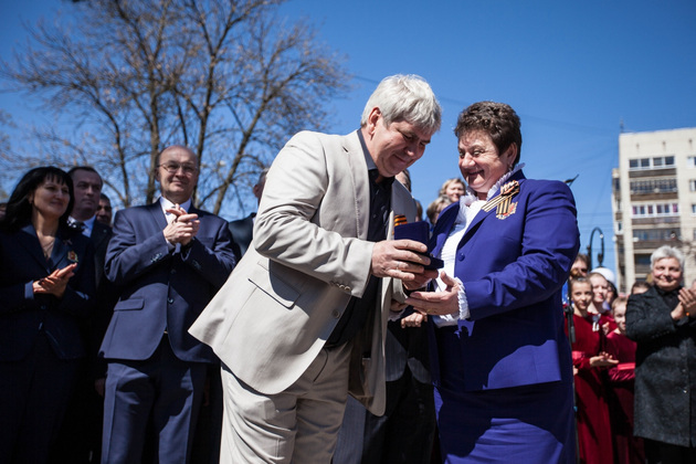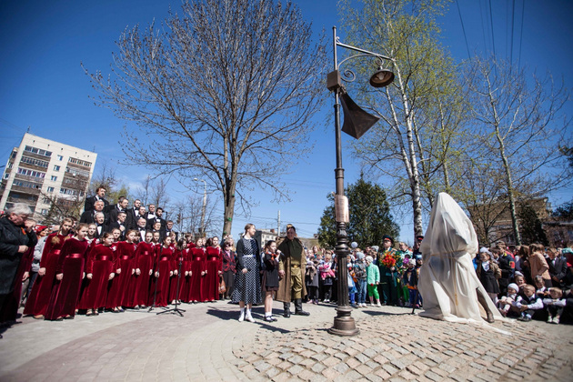 Но все равно ‑ вчера ровно в полдень под звуки духового оркестра и песни военных лет в исполнении хора «Распев» публике явили творение Игоря Черноглазова. Бронзовые мальчик и старик внимают голосу Левитана из репродуктора. На фонарном столбе ‑ металлический лист с портретом Левитана с сообщением, что именно он возвестил стране о великой Победе. Тут же QR-код, с помощью которого через смартфон можно включить и эту историческую фонограмму, и другие записи «голоса эпохи». Игорь Черноглазов объяснил, что это памятник еще и владимирцам, ковавшим Победу в тылу.