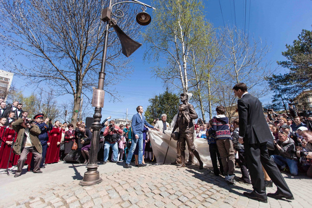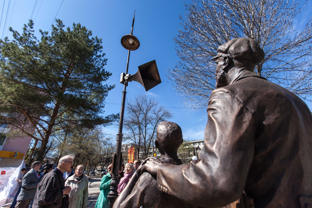 - Образ полностью передает войну. Люди прислушивались к этому рупору, ждали именно этот голос, - одобрил художественное решение правнук Левитана Артур, приехавший во Владимир на это событие (ведь наш памятник Юрию Борисовичу ‑ первый и пока единственный в стране). - Здорово, что в наше время люди помнят этот голос. Я благодарен жителям и администрации города Владимира за такой подарок.