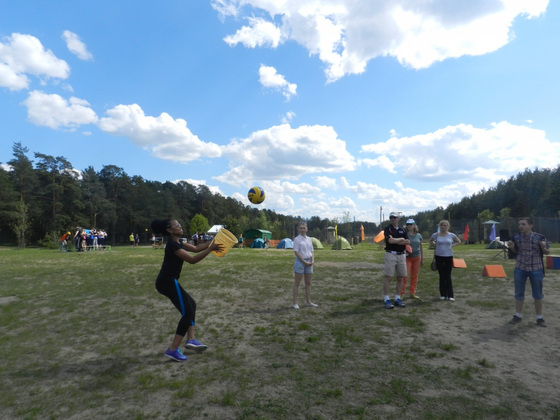 В туристическом слете участвовали также студенты пяти курсов Института физкультуры. Каждая команда должна была пройти восемь станций с различными заданиями. Так, на одной нужно сложить из нескольких деталей квадрат, на другой ‑ сыграть в волейбол с соперниками с помощью круглых тряпок и большого мяча. Именно это спортивное испытание больше всего понравилось американским гостям.