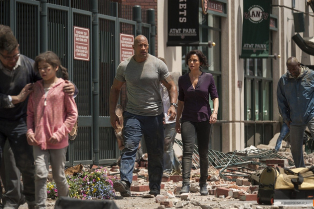 В целом Пейтон аккуратно следовал жанру. На фоне масштабной катастрофы развивается личная драма харизматичного главного героя, который то и дело оказывается на волосок от гибели, но готов рисковать снова и снова ради дорогих ему людей. В данном случае героя зовут Рей. Он пилот спасательного вертолета. В опасности - его любимые жена и дочка. Супругу он спас довольно быстро, а вот дочку пришлось поискать в проваливающемся в тартарары городе.