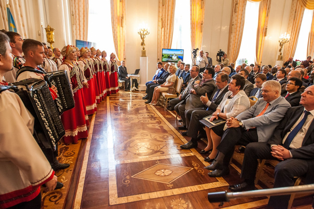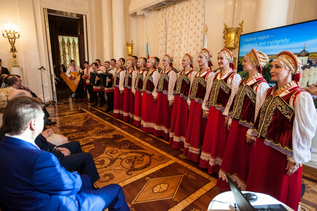 В четверг, 4 июня, Владимирская область не только на других посмотрела, но и себя показала. В Дом приемов Министерства иностранных дел России (роскошный особняк на Спиридоновке, 17, был построен когда-то для жены Саввы Морозова Зинаиды Григорьевны по проекту архитектора Федора Шлехтеля. - Прим. авт.) приехали послы и дипломаты более чем из ста государств мира. Причина прибытия ‑ презентация экономических, инвестиционных и туристических возможностей Владимирской области.