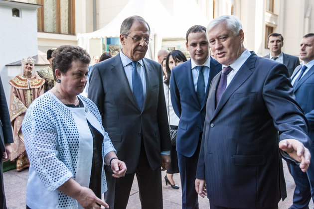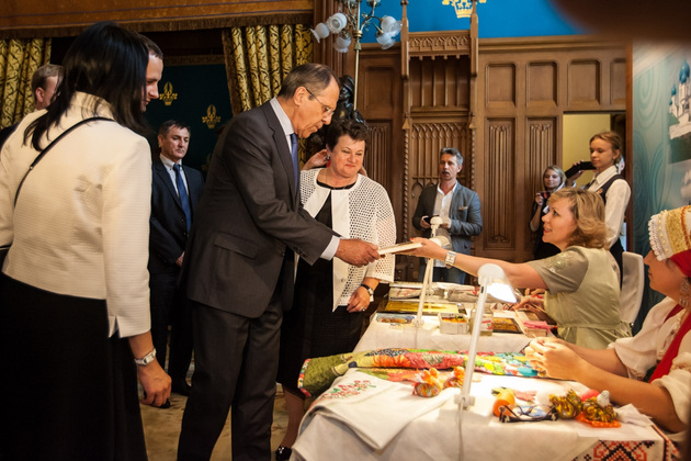 ...Иностранных дипломатов встречала Светлана Орлова. Знакомились - впрочем, Орлова за время работы в Совете Федерации и в Конгрессе местных и региональных властей Совета Европы познакомилась со многими дипломатами и ранее. Затем дипкорпус шел осматривать выставку владимирских предприятий и народных промыслов. Многие удивленно косились на гендиректора «Гусара» Александра Березкина - он внешне очень похож на Лаврова. Иностранцы, видимо, думали, что Березкин либо сам Лавров, либо его брат, либо двойник. Не успели мы с ним пошутить на эту тему, как прибыл и сам Сергей Викторович. Он тоже осмотрел владимирскую выставку. Затем министр и Орлова провели закрытую для СМИ двустороннюю встречу.