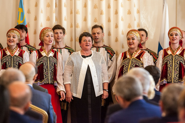 По традиции, официальная часть завершилась выступлением нашего фантастического ансамбля «Русь». Две финальные песни - «Мой родимый край» и «Гляжу в озера синие» - «Русь» пела вместе с Орловой. Дипломаты из стран СНГ тоже подпевали и всем дипкорпусом наградили артистов и нашего губернатора бурными аплодисментами. Министр Лавров восхищенно покачал головой.