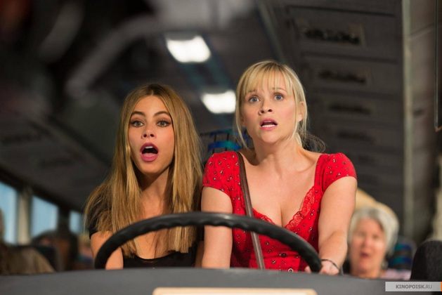 Насколько я знаю, ни Уизерспун, ни Вергара с режиссером Энн Флетчер до сих пор не работали. Широкий зритель знает эту постановщицу (красивую, хоть самой иди в кадр) по мелодрамам «Шаг вперед» и «Предложение». «Красотки в бегах» ни на тот, ни на другой фильм не похожи. И сразу скажу: рейтинг «16+» у этой картины совершенно не случаен — количество недетских шуточек на экране просто зашкаливает.