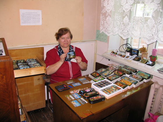 Например, о том, как полуслепой, а значит, и непригодный к живописному искусству наследник иконописной династии начал раскрашивать литографические лубочные картинки. А затем основал во Мстере первую в губернии литографию. Трогательная история об обреченном на бедность инвалиде, сумевшем стать знаменитым предпринимателем (лубки, напечатанные в его типографии, репродуцируются во всех альбомах, а на их компьютерных репликах делают бизнес сувенирные лавки по всей России). И вот представьте, как здорово под соусом этой легенды расходился бы этот копеечный «лубок» на своей исторической родине. Заказать пару литографских камней, чтобы демонстрировать процесс туристам, дать им сделать оттиск самим, арендовать помещение на Большой Миллионной ‑ и продавай по доступной цене! Тем более что основная мстерская сувенирка дорогая. Пластиковые очечники, расписанные миниатюристами, на кассе музея - от 300 рублей. Шкатулки ‑ больше тысячи самые простенькие.