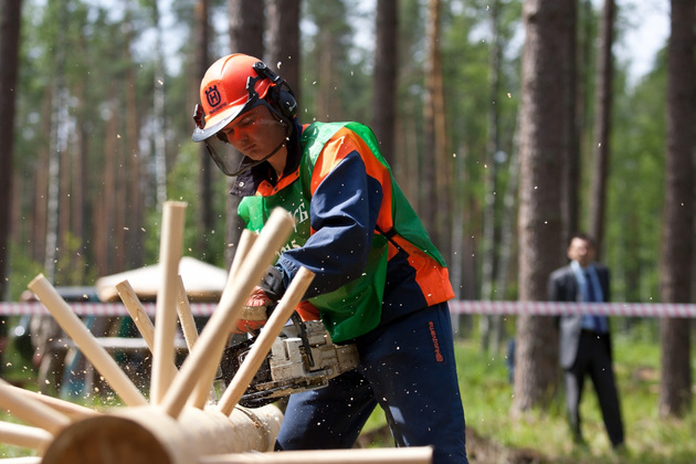 В прошлую пятницу в лесу под Никологорами (Вязниковский район) определяли лучшего лесоруба Владимирской области. Там прошли соревнования «Лесоруб-2015». Его победитель поедет защищать профессиональную честь владимирских мастеров бензопилы уже на российском уровне. Что отличает профессиональные конкурсы, так это то, что здесь «по блату» побед не раздают. Всегда - борьба, всегда ‑ азарт. Тем они и интересны.