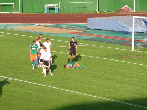 Но судья вдруг назначил в ворота «Торпедо» пенальти. Борьба в штрафной, как показалось арбитру из Петербурга, проходила с нарушением правил. Но с арбитром не спорят. Стоявший в этот день в воротах «Торпедо» Артем Романов не смог отразить удар Дениса Большакова из ФК «Домодедово» с 11-метровой отметки. Хотя и угадал направление удара.