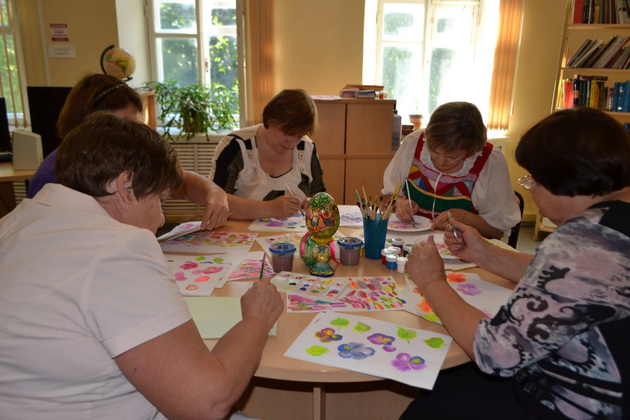 Серьезно увлекаются старушки и японской каллиграфией, и прочими художествами. При нас по скайпу показывали свои свежие рисунки друзьям в таком же доме-интернате в Коврове.