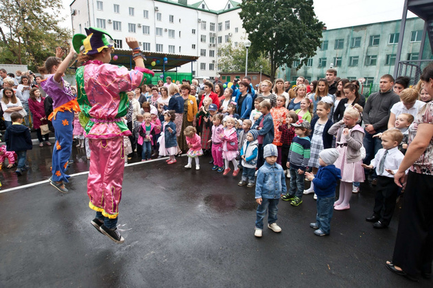 Не забыли власти и о подарке - садику достался сертификат на газонокосилку. Так что и образцовые газоны, видимо, тут гарантированы.