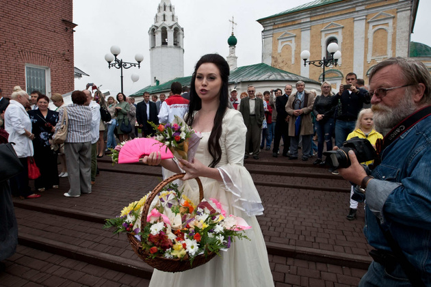 Периодически дождь заставлял праздничный народ прятаться в кафе и выставочных павильонах, но как только дождь прекращался, толпы владимирцев вновь выплескивались на центральную улицу и на Соборную площадь.