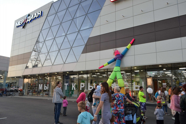 Ответ можно было получить на празднике открытия ТЦ «Меридиан». Расположен новый объект на улице Растопчина, по соседству с гипермаркетом «Глобус». Праздник открытия длился практически весь день: начиная с утренних игр, конкурсов и аттракционов для детей и вплоть до вечернего концерта группы «Градусы». Заметно, что создатели хотят сделать торговый центр привлекательным для всей семьи.