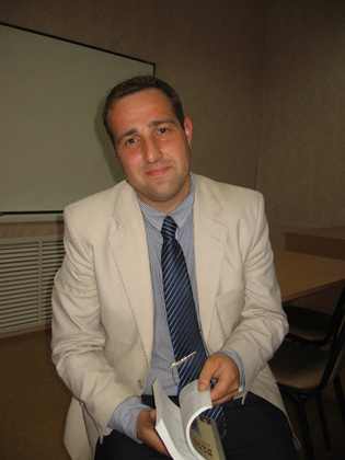 Сергей Курасов родился в селе Бутылицы Меленковского района. 27 лет. С серебряной медалью окончил Бутылицкую школу, с красным дипломом - истфак (с немецким языком) ВлГУ. В школе работает пятый год. Кроме 26 часов школьной нагрузки Сергей Александрович читает лекции коллегам во Владимирском институте развития образования, где он - доцент кафедры образовательных технологий. Занимается с воспитанниками областной школы для одаренных детей. Заканчивает аспирантуру ВлГУ, готовится защитить диссертацию. Внештатный экскурсовод ВСМЗ.