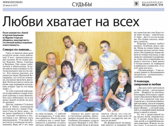 Материал про Сущевых прочитали жители Мурома, в том числе и глава округа Евгений Рычков. Оперативно было принято решение выделить многодетной семье более просторную трехкомнатную квартиру из муниципального жилого фонда.