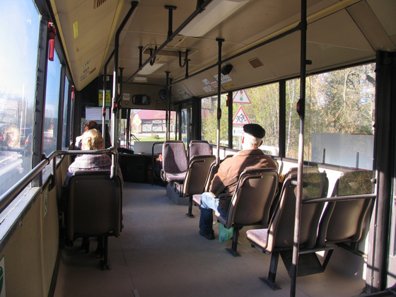 На конечной остановке 20-го маршрута на приколе стоит, и, видимо, уже довольно давно один автобус. Народу на первый взгляд не так и много. Однако к отправлению рейса откуда-то набирается приличная толпа. Во всяком случае, на обратном пути все кресла были уже заполнены, а сюда от Юрьевца я ехала в гордом одиночестве. Среди пассажиров много пациентов медцентра. Есть детки на костылях.