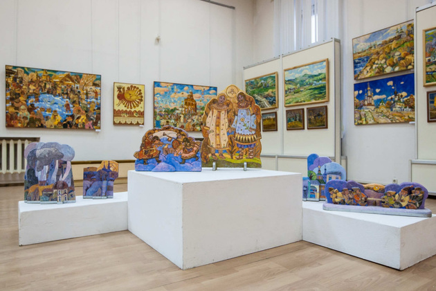- Холсты - плоскость, скульптура - объем. Мне всегда хотелось показать, что находится за холстом, дать в объеме жизнь своих героев, - поясняет художник. - Уверен, что и многим зрителям иногда хочется заглянуть за картину: есть ли там жизнь какая-нибудь или нет? Я стараюсь показать им это, дополнить историю, рассказанную на холсте. За два года наработал более сорока декоративных композиций, половина из них - на выставке. Это необходимый для меня эксперимент. Насколько эксперимент оказался удачным - судить вам.