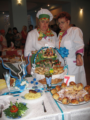 И действительно, было трудно удержаться - очень хотелось попробовать блюда, приготовленные на показ строгому жюри. Особенно впечатляли торты, корзины с пирогами, канапе различных видов, оригинально оформленные бутерброды, закуски...
