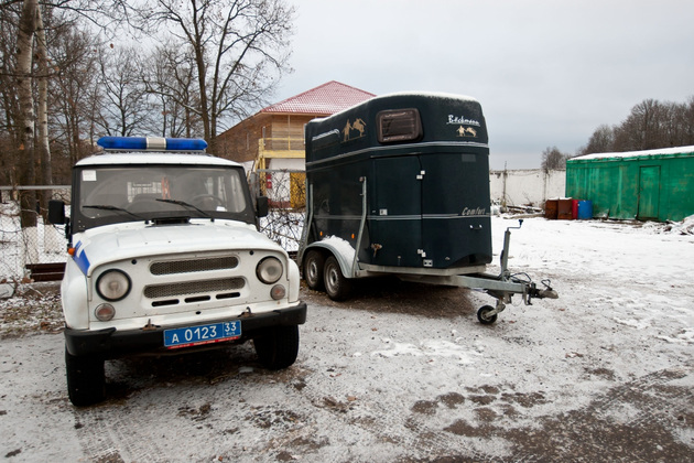 Первое, что впечатлило на конной базе ‑ припаркованная неподалеку от конюшни перевозка, похожая на рубку подводной лодки. Я такие коневозки раньше только в кино про скачки видела.
