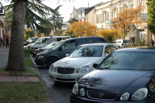 Тут, правда, есть одно объяснение. Говорят, в Абхазии, во-первых, очень низкая ввозная пошлина на иномарки, а во-вторых, очень велико число машин-«двойников». Выезжать на них за пределы Абхазии чревато, но в самой республике Интерпола нет, так что на «двойниках» смело ездят все, кто может себе это позволить.