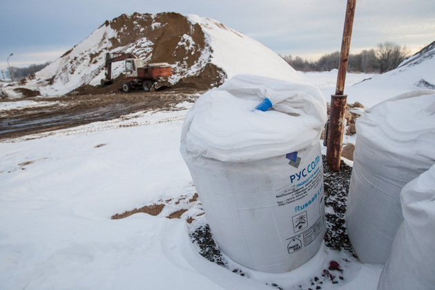 Противогололедной смесью мы заправляемся на пескобазе, что на «пекинке» в районе «Глобуса». Гора из соли и песка вырастает здесь каждое лето. Смешивают компоненты при помощи бульдозеров: одна часть соли и четыре - песка. Никакой химии. «Бионордом» посыпают только самые проблемные места: остановки, перекрестки, тротуары. Сыпать реагенты на дороги ‑ слишком дорогое для Владимира удовольствие.
