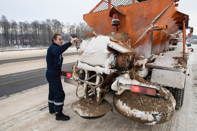Почему же, если работа ЦУГД непрерывна, на городских магистралях нередко бывают и наледь, и снежная каша? А потому, что на однократную уборку улиц требуется три часа. Это - просто сгрести снег с проезжей части к обочинам. Но по-настоящему чистыми дороги станут только после троекратной обработки. Оставшийся на проезжей части спрессованный снег посыпают пескосоляной смесью, которая делает наледь рыхлой. На то, чтобы рассыпать соль, требуется еще не менее трех часов. Потом она должна еще начать действовать. Происходит это лишь под колесами автомобилей, так что ночью смесь практически не «работает». Дороги, посыпанные с вечера, оттаивают только в утренний час пик.