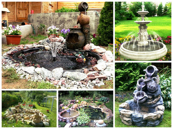 Насосы бывают погружными (в воде) и поверхностными (над уровнем воды). Погружные насосы чаще используются для устройства небольших фонтанов, а надуровневыми агрегатами можно пользоваться и для создания водопадов.