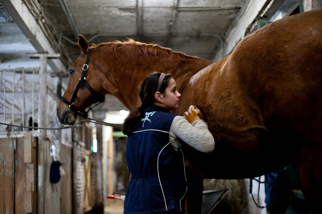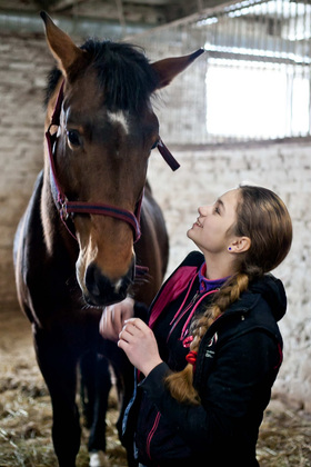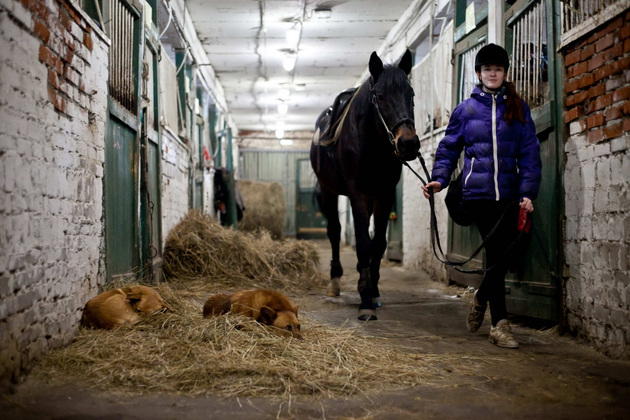 Когда ее впервые посадили на лошадь, девочка даже не помнит. В пять лет она уже рысила. Мама Насти занималась конным спортом, и дочь, вполне объяснимо, решила пойти по ее стопам. Все свободное от школы время Настя проводит на конюшне. Вечерами изучает специальную литературу и составляет планы занятий с питомцами и собственных тренировок. А сегодня она с лошадьми ‑ с самого утра, потому что уроки отменили из-за эпидемии гриппа.