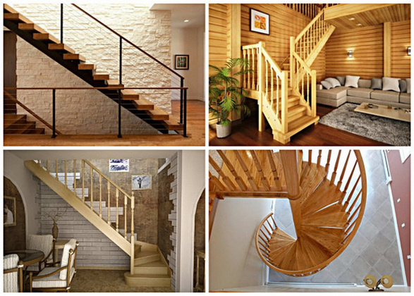 По форме лестницы могут быть маршевые - прямые, поворотные или винтовые. Вторые занимают меньше места, при этом они менее удобны для постоянной ходьбы. Маршевые лестницы отнимают у помещения значительную площадь, однако при разумной планировке пространство под лестницей можно зашить перегородкой и использовать как кладовую или гардеробную.