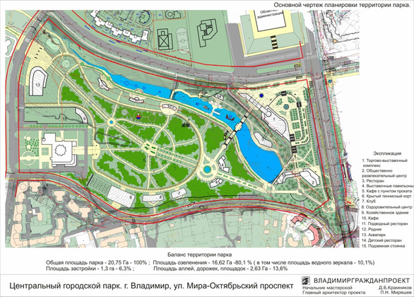 Главный архитектор «Владимиргражданпроекта» Николай Волков считает, что зелеными в градостроительной документации должны стать оба участка, арендовавшиеся Хигером: и зона «тематического парка», и общественно-деловой угол улицы Мира и Октябрьского проспекта. В первом случае для этого потребуется вносить изменения в Правила землепользования и застройки, что, по словам Волкова, сделать легко. А вот деловая зона напротив «белого дома» уже узаконена в генплане, а процедура его изменения сложнее и длительнее. Но Волков считает, что это необходимо.