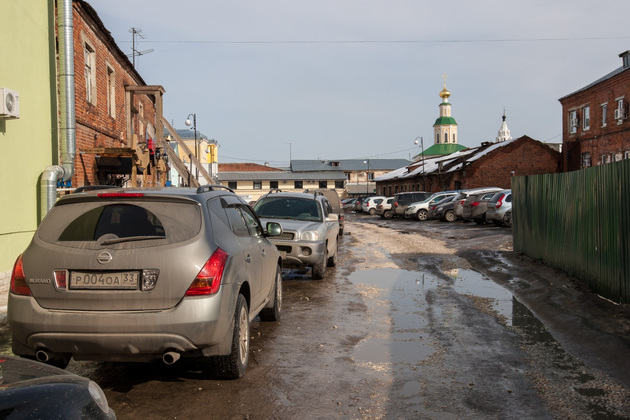 Вся в ямах, например, улица Разина. Фотографируем одну из них и знакомимся с владимирцем, которому приходится ездить здесь каждый день.
