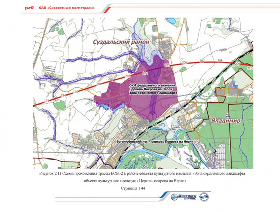 Соседство магистрали с храмом Покрова на Нерли рассматривают в Минкульте. ВСМ уже сместили на 400 метров к северу от первоначального варианта, но дорога все равно попадает в охранную зону памятника ЮНЕСКО.