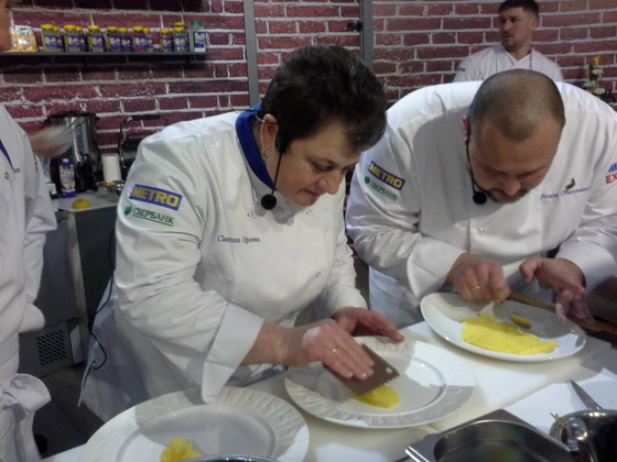 Готовили вип-кулинары исключительно из отечественных продуктов, а в процессе готовки говорили об импортозамещении. Сомнений нет ни у кого: санкции - это не повод класть зубы на полку. Прилавки той же сети «Метро» на 90 процентов заполнены отечественными товарами, которые дешевле и качественнее импортных. Российские производители могут накормить любого гурмана. Глава компании «Метро Россия» и Греф, например, готовили баклажаны с грибами шиитаке, треть которых выращивается в России.