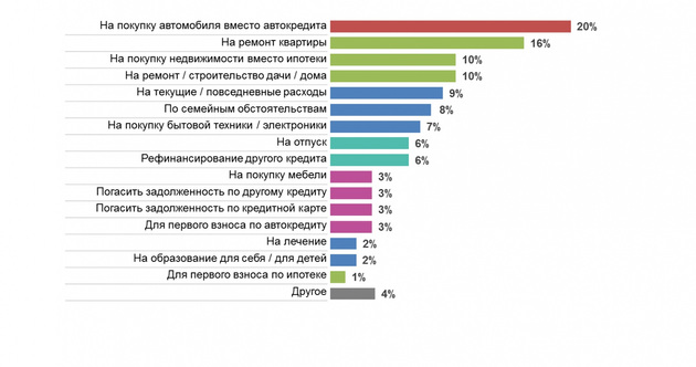 Еще любопытный факт: более половины потребительских кредитов сейчас ‑ это замена ипотеки и автокредитования. То есть квартиры и машины люди в залог оставлять не хотят и готовы за это доплачивать. Другая часть ‑ это ремонты недвижимости, отдых, мебель, бытовая техника, рефинансирование и погашение прежних займов.